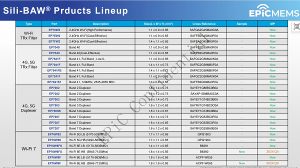 产品:4G/5G BAW Filter, Duplexer, Cat1. PA, Cat.4 PA, WiFi7 BAW,